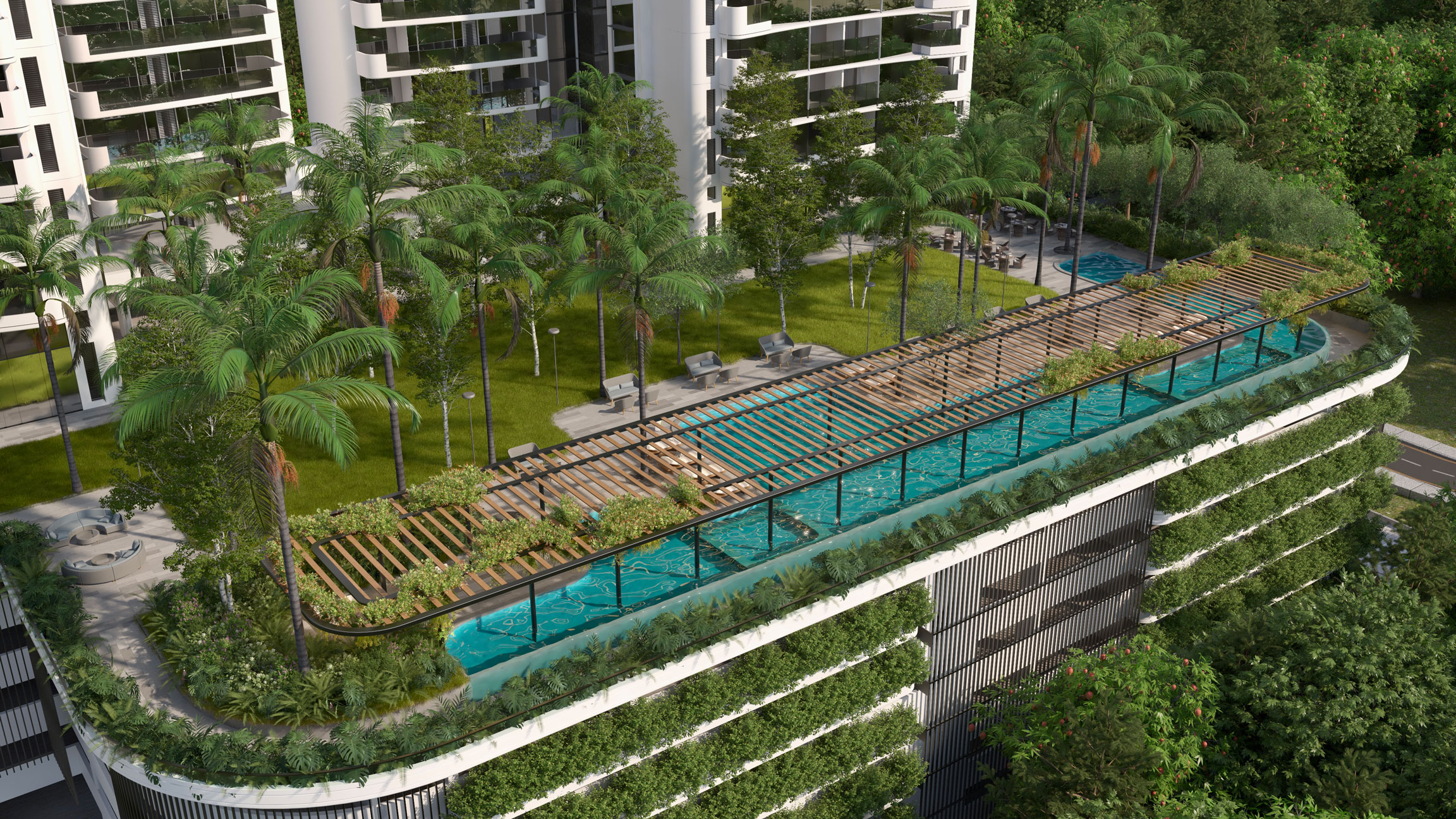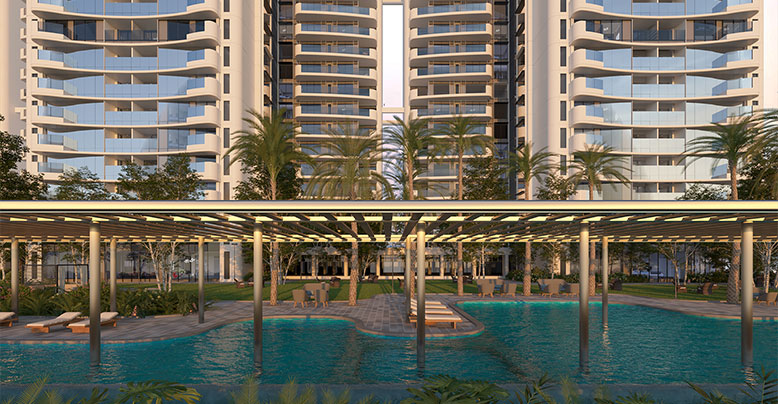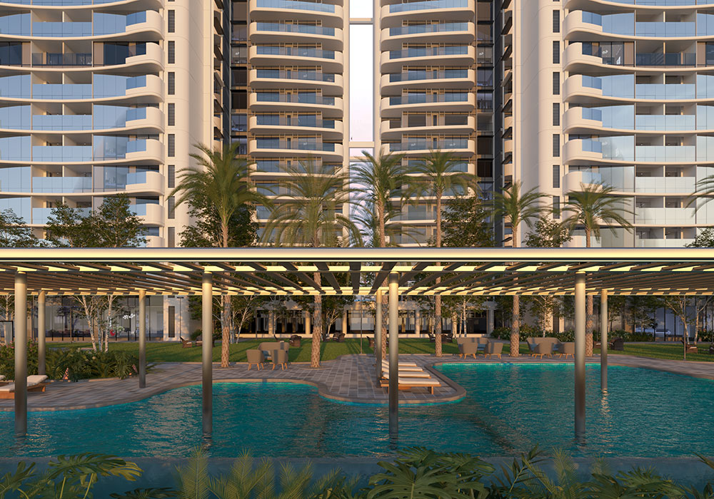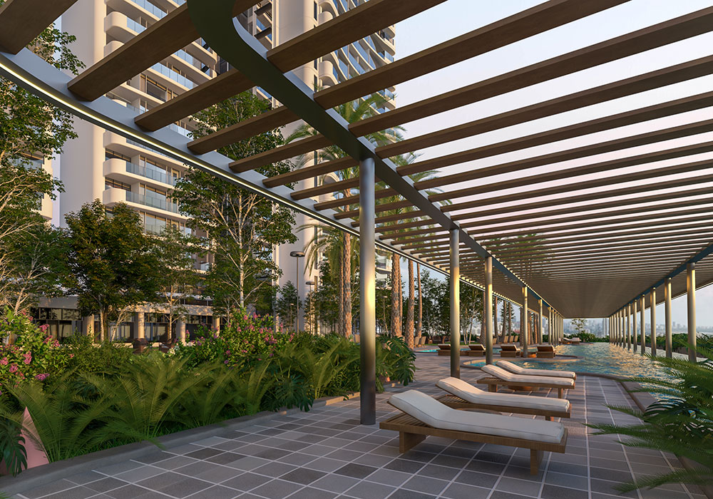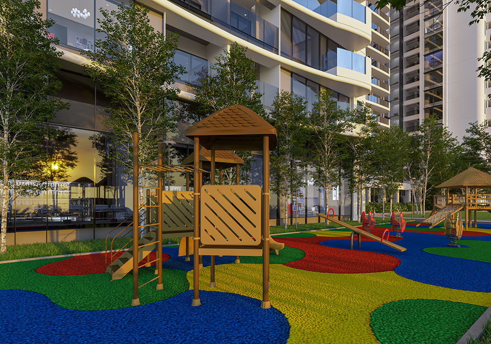 A sprawling landscape podium with 30+ privileges designed for leisure, wellness and recreation